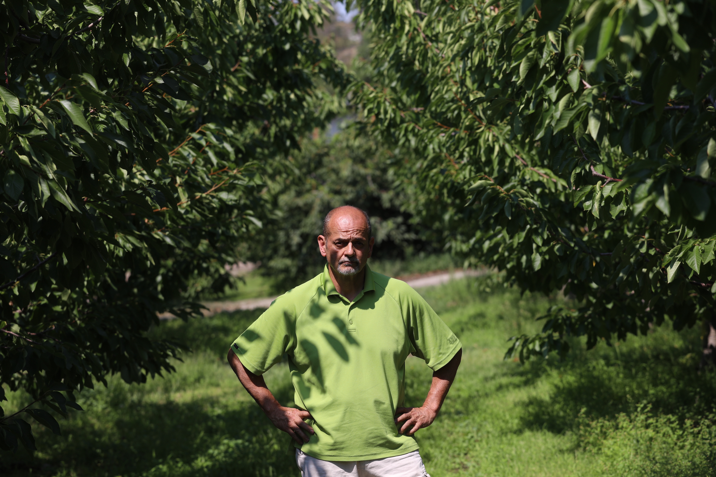 Joe Ciaramella of CC Orchards is pictured at his cherry orchard in Naramata, B.C., on Aug. 13, 2024. (Aaron Hemens/The Globe and Mail)