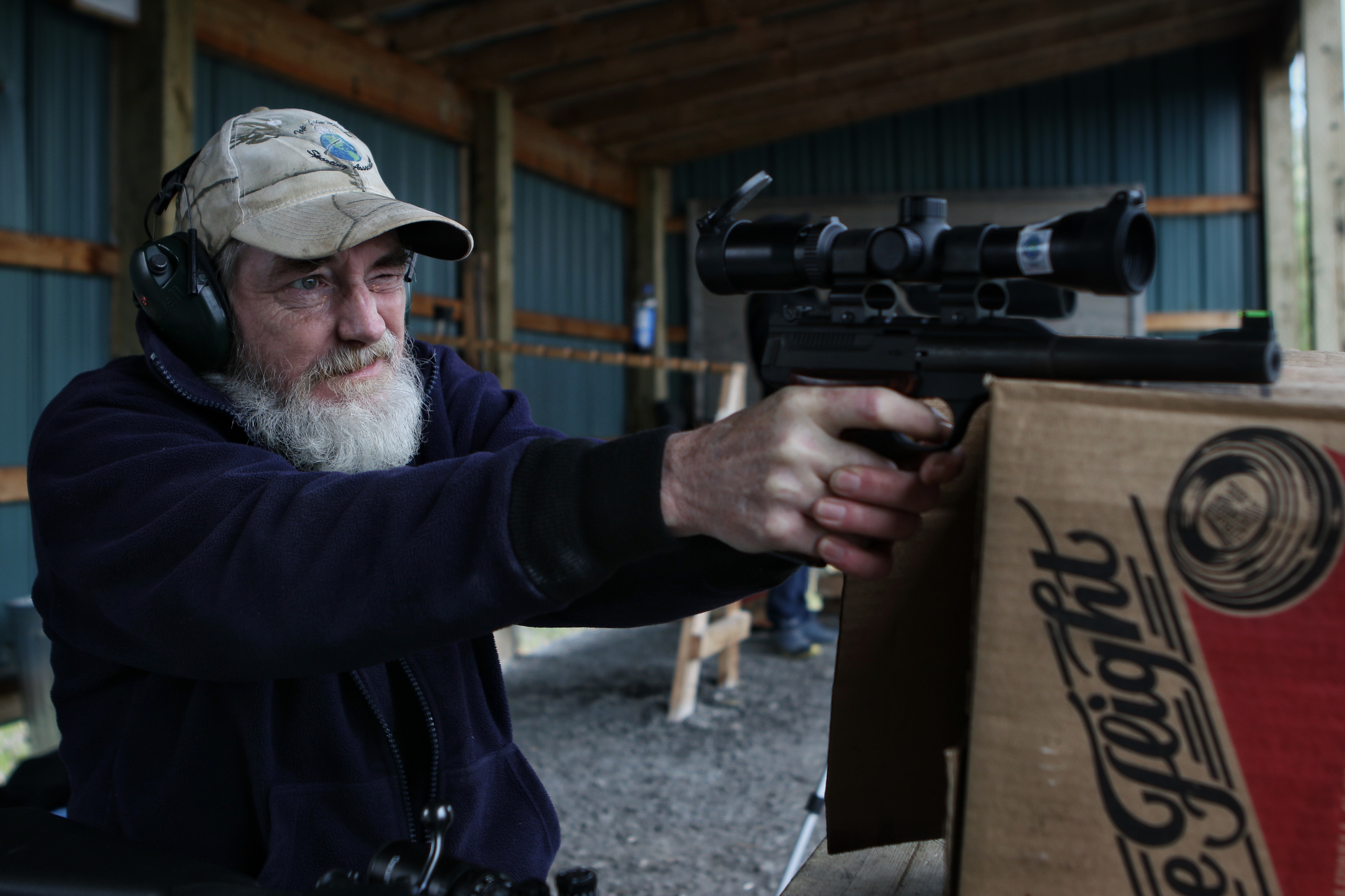 Inuvik Gun Club secretary Chris Garven Ð who also holds the titles of Òrange masterÓ and Òrange officerÓ with the group Ð practises his pistol shooting at the club’s outdoor range in Inuvik, NWT, on June 15, 2019.