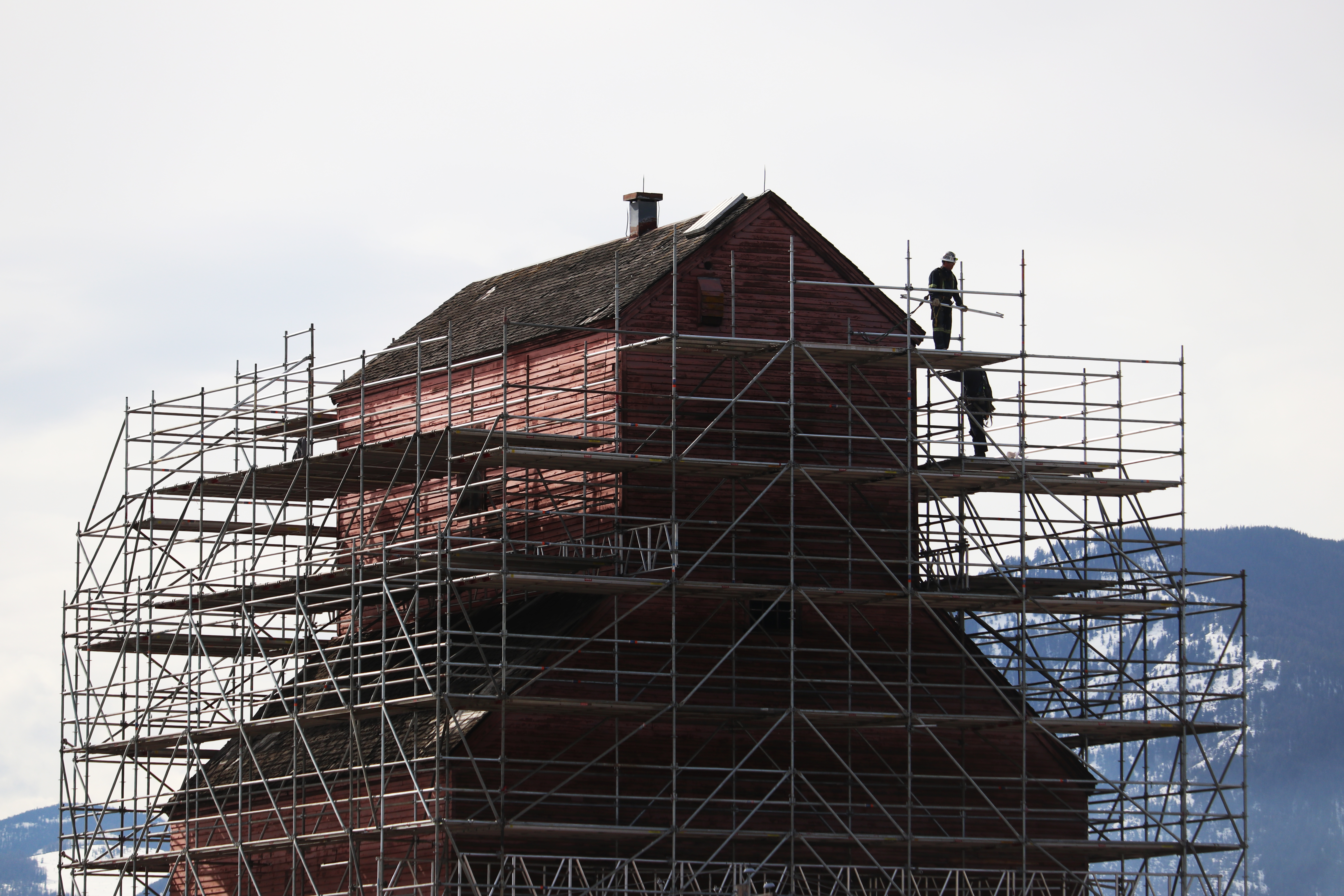 Construction of Creston’s red grain elevator. Creston, B.C. March 2021