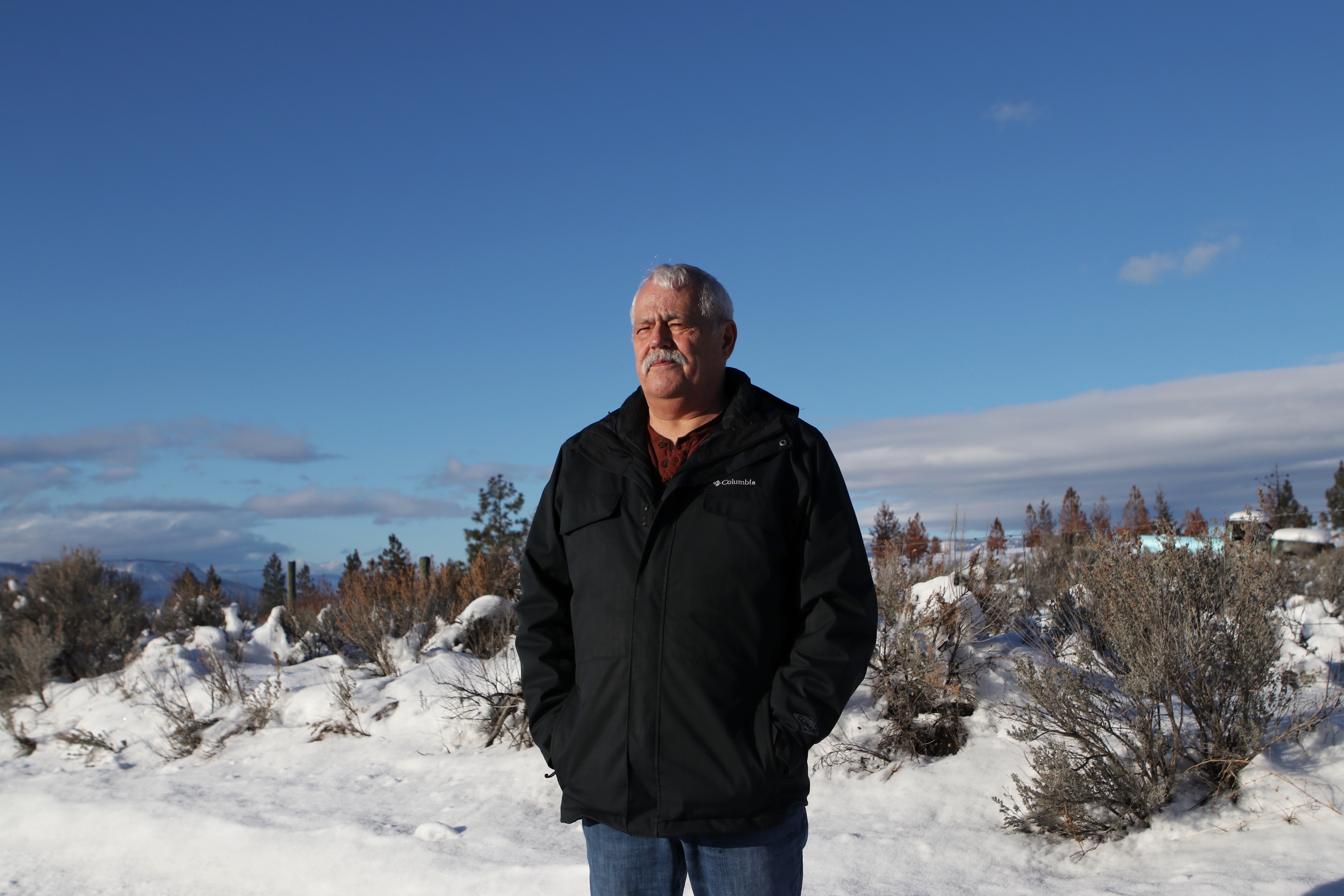 Ashcroft Indian Band Chief Greg Blain stands near Barnes Lake in Ashcroft, B.C., on Jan. 10, 2022, part of an area that had previously been impacted by the 2021 Tremont Creek wildfire, which burned nearly 63,000 hectares.