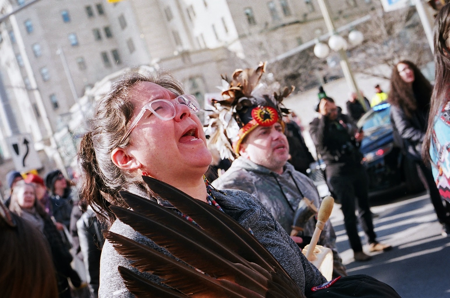 rallying cry. Wet’suwet’en solidarity rally and march in Ottawa Ottawa, Ontario. February 2020. ~ Shot with the Canon Rebel 2000, on 35 mm Kodak Ultramax 400 film.